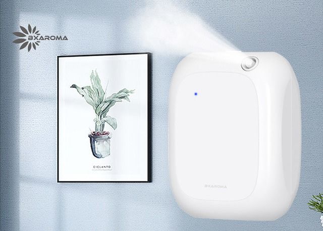 होटल के लिए व्हाइट स्मार्ट ब्लूटूथ इलेक्ट्रिक खुशबू डिफ्यूज़र मशीन खुशबू मशीन 1500m3
